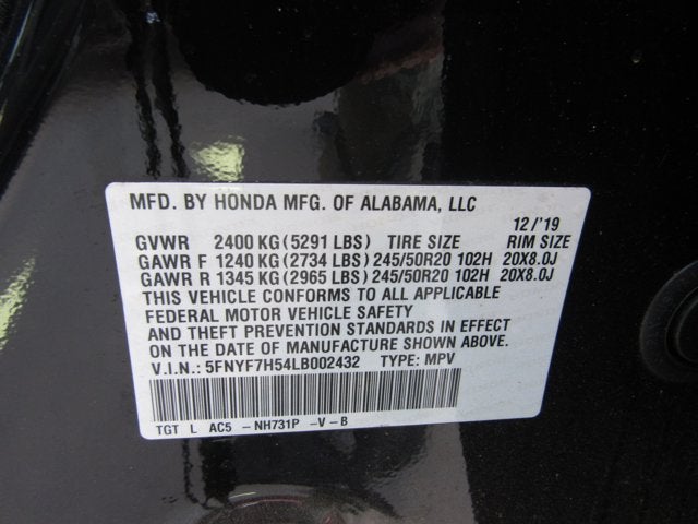 - Front Tire Size: P245/50HR20