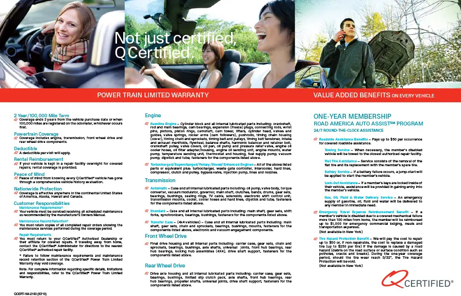 - Every Q-Certified vehicle qualifies for optional Mechanical Repair Service Contract.